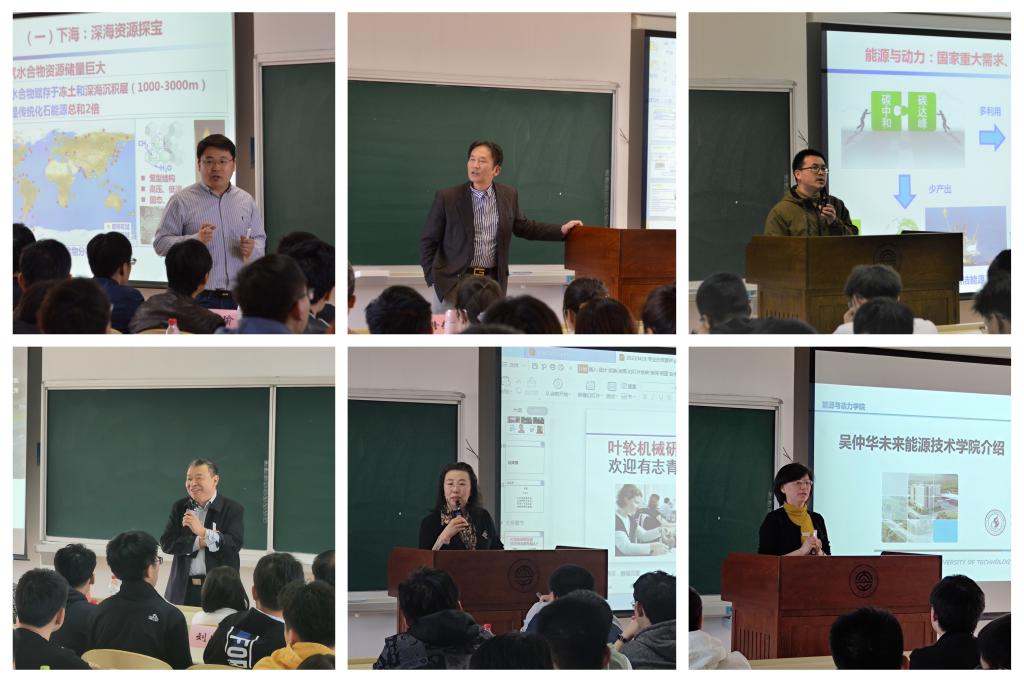 78位老师倾情参与,其中副教授以上65人,占学院副高级以上人数的80%。专业老师们根据不同专业方向的特点分别介绍实验室硬件条件、所承担的重大科研项目、取得的科研成果和人才培养情况,带着对能动学子的殷切期盼,帮助同学们全面了解各个专业的科研水平,专业特色以及研究方向,数语间或春风化雨、娓娓道来,或激情四射、慷慨激昂。6场精彩的学术报告,让学生们看得见未来的自己,也看得到专业的分量,主动跟随导师走进实验室,铸起科研报国之梦。