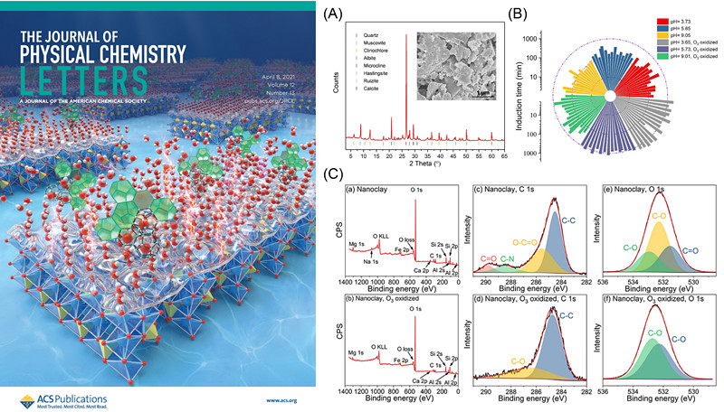 宋永臣教授团队在海洋环境碳封存研究方面取得重要原创成果,连续以封面论文形式在自然指数(Nature Index, NI)期刊The Journal of Physical Chemistry Letters和Environmental Science & Technology上发表。研究首次发现了纳米黏土颗粒通过静电作用使水分子弱偶极化促进二氧化碳水合物成核现象,揭示了表面包覆有机质抵抗二氧化碳注入过程局部酸度波动的保护机制,提出了利用原位地质环境促进水合物形态碳封存新概念。