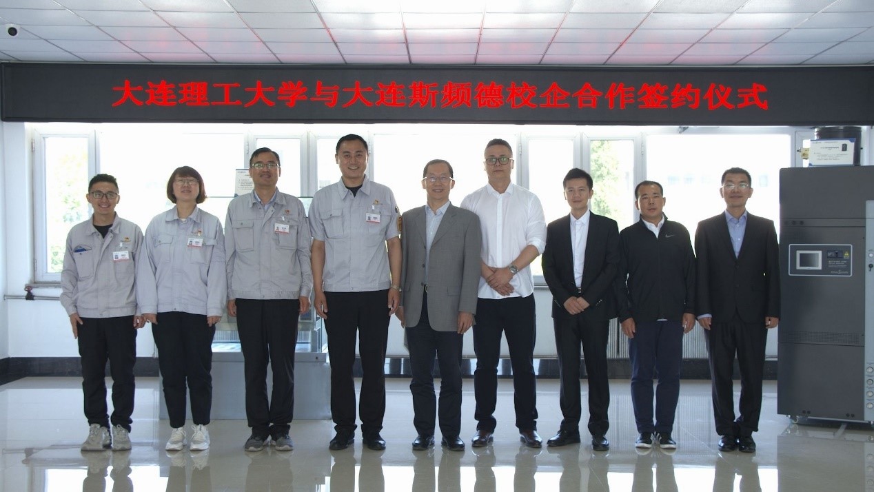 ”产学研合作项目签约仪式。大连斯頻德总经理高敬璞、本部长陈刚等公司主要领导出席签约仪式。