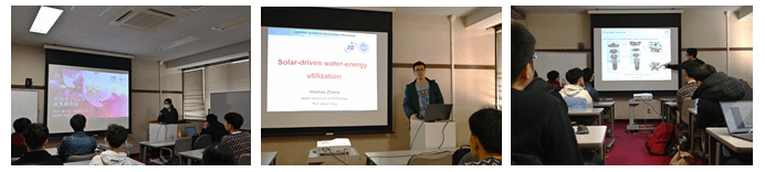 平井秀一郎教授讲解燃料电池、史蹟教授讲解磁控溅射镀膜、井上刚良教授讲解热管、平田敦教授讲解激光材料表面改性技术