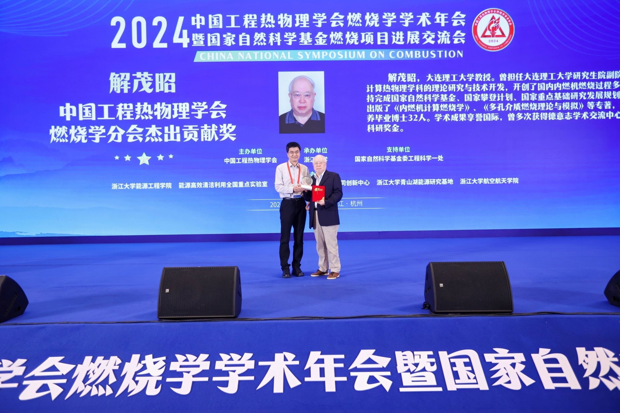 中国工程热物理学会燃烧学学术年会由中国工程热物理学会与国家自然科学基金委工程科学一处共同主办,是国内燃烧学界水平最高、规模最大的学术盛会。本次大会参会代表达2100余人。此次中国工程热物理学会燃烧学分会“杰出贡献奖”的授予,不仅是对解茂昭教授学术成就的认可,也是对他个人品格和学术精神的褒奖。此次荣获“杰出贡献奖”,解茂昭教授表示,这是对他个人及其团队多年努力的认可,也是对我校工程热物理学科的肯定。虽已年届八旬,他将尽心尽力,为我国燃烧科学与技术的发展和后备人才的成长继续发挥余热,贡献力量。