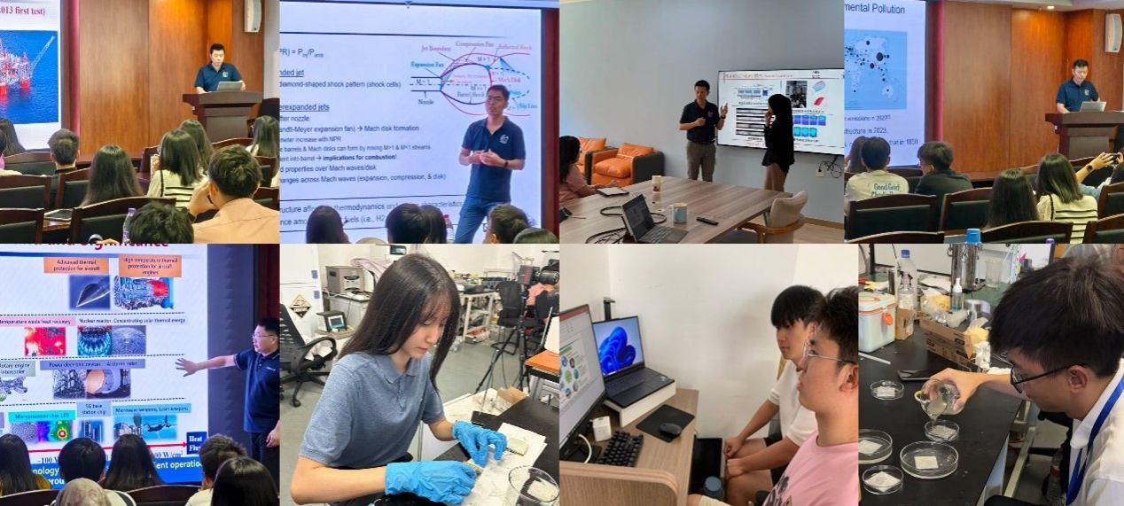 胡成志、龚路远、于涛、董鹏博、常亚超、张延志分别带领营员开展研习,围绕:(1)“高发射率、柔性、自粘性吸湿且辐射增强的散热薄膜研发与制备”;(2)“基于OpenFoam的计算流体动力学模拟以及超疏水结构表面的制备与表征实验”;(3)“深部咸水层中二氧化碳封存的数值模拟”;(4)“零碳燃料发动机的燃烧技术”;(5)“零碳氨氢喷雾的数值模拟与实验测量”五大主题开展了为期11天的科学研究。