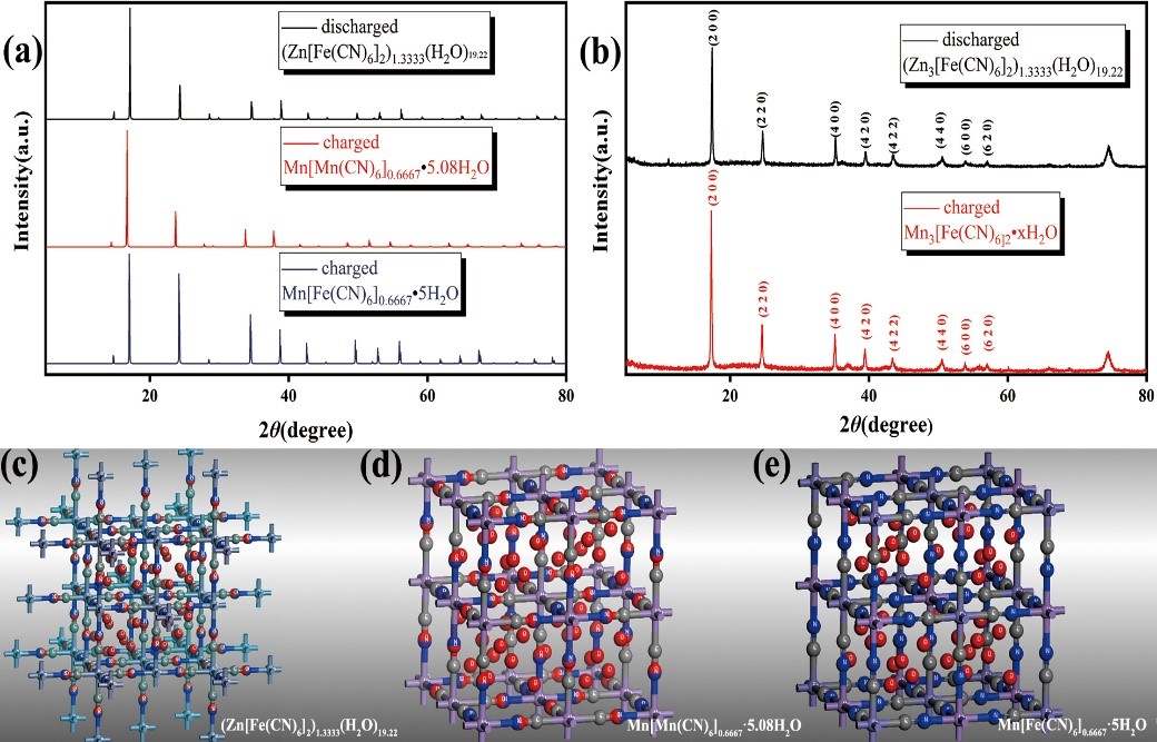 与传统水系锌离子电池相比,正极活性物质增加了普鲁士蓝,且发现普鲁士蓝与二氧化锰在电池充放电过程中时发生反应转变为铁氰化物Zn3 [Fe(CN)6] 2和Mn3 [Fe(CN)6] 2 ,在该电池充放电过程中可提供稳定的330 mAh/g充放电容量。此类生成物有较高稳定性使得电池拥有高性能、高稳定性及长寿命的特点,且制造成本相对较低,未来有望在大规模低成本高效能储能、动力电源系统等领域得到广泛应用。